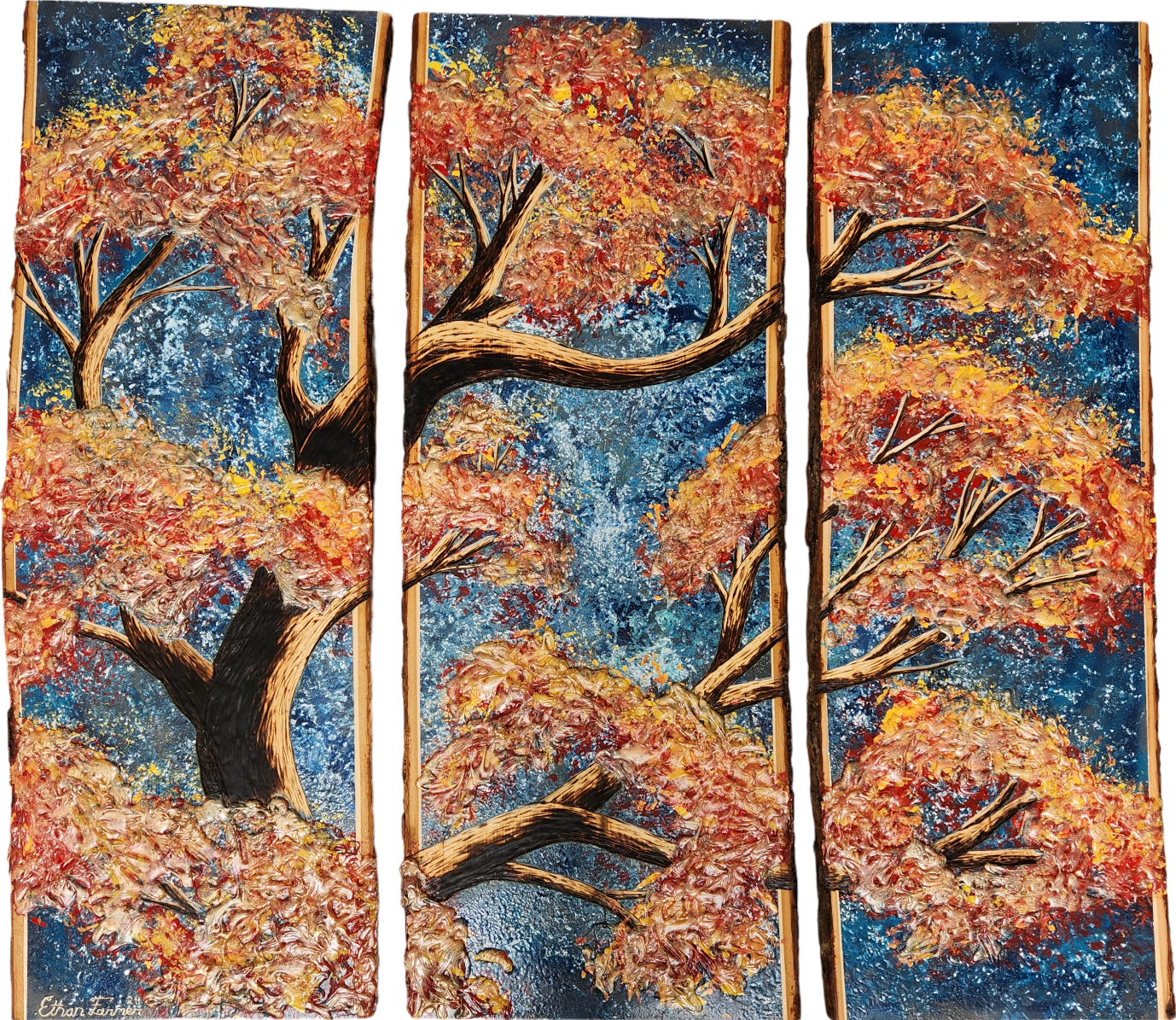 Inspired by his experiences as a former Police Officer and Army Combat Medic, Ethan Farmer utilizes torches, carving tools, and acrylics to create works depicting the beauty of the natural world. A self-taught artist, and is completing a Master’s Degree in Physician Assistant studies, and dedicates his free time to crafting unique pieces for clients. Personalization is one of his specialties.