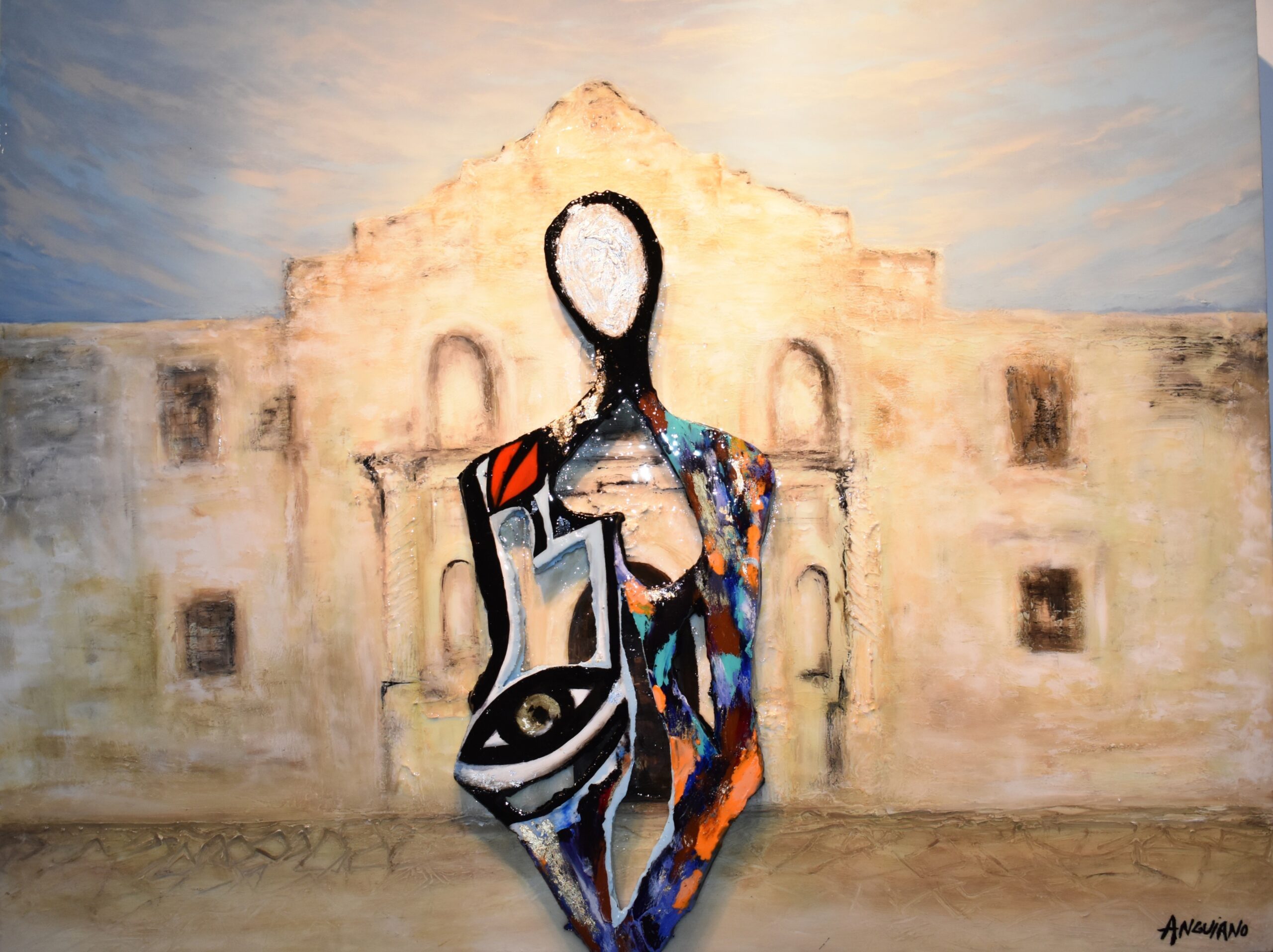 Creating on multiple platforms is an important part of my vision, expression, and lifestyle. I thrive on the challenge of processing my thoughts, emotions, and what I can imagine through creative works. The context and subjects of my works evolve and fluctuate, just like my life. It's my ambition to translate and exchange with the viewer while I speak through my art. I remain curious about all possibilities and positive changes I can manifest through creating artwork. The universal language of art for me has the power of connection. An artist reveals oneself, showing vulnerability and strength, celebrating true identity with the viewer. Kim Anguiano was born and raised in San Antonio. Kim’s creative journey reflects the city’s diverse culture through varied artistic interpretations. With her “Self-Ease” series, launched during Contemporary Art Month in 2024, she explored empathy, self-discovery and self-love through abstract, faceless figures symbolizing shared humanity. Using mixed media: paint, resin, reflective accents, insulation board, wire, and texture, Kim aims to plant seeds of new possibilities and foster a deeper understanding of ourselves and one another beyond differences. Kim has been represented at the SAAC and Doriva Local Art Source Gallery since 2020. Honored and humbled to have been a creative within the San Antonio by my day work with the performing arts community as a wig stylist and dresser, including multimedia and visual art. Includes S.A. and ATX rock scene, Ballet SA, Opera SA, including Broadway Tours at Majestic Theatre. The interactive “Power” was installed at Girls Inc. and Alpha Women’s Home for art therapy.