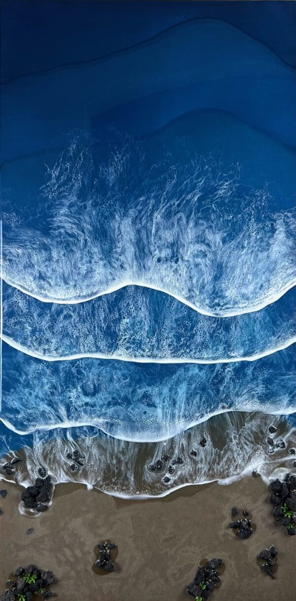 A San Antonio native and self-taught artist, honoring her skills in acrylic pours, alcohol inks, and resin art since 2015. Her artwork is influenced by nature and her travels, mainly landscapes and waterscapes. Europe and Hawaii ignited her love for ocean art, and today she enjoys creating the realistic movements of the ocean waves. She creates abstract art in hopes that each piece fosters human connection. It provides an opportunity to be vulnerable by allowing each person to see and feel whatever they want. As a result, it brings her joy to hear the various interpretations of her work.