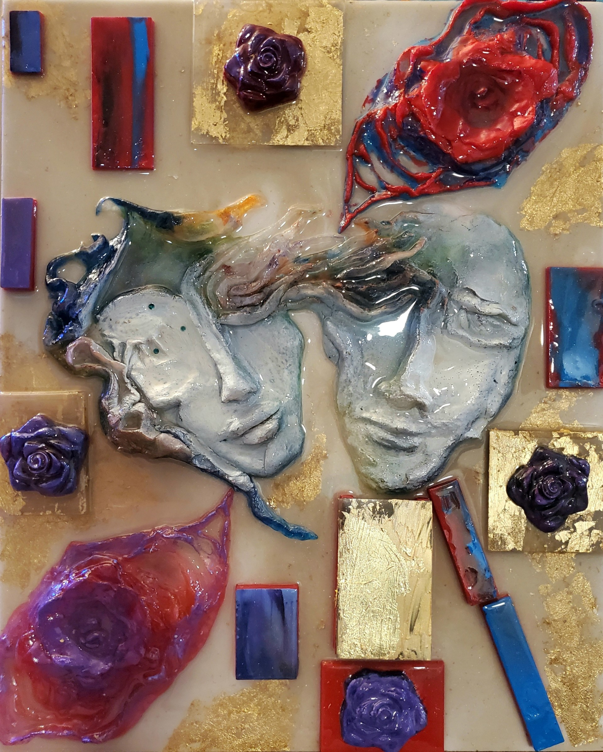 Creating on multiple platforms is an important part of my vision, expression, and lifestyle. I thrive on the challenge of processing my thoughts, emotions, and what I can imagine through creative works. The context and subjects of my works evolve and fluctuate, just like my life. It's my ambition to translate and exchange with the viewer while I speak through my art. I remain curious about all possibilities and positive changes I can manifest through creating artwork. The universal language of art for me has the power of connection. An artist reveals oneself, showing vulnerability and strength, celebrating true identity with the viewer. Kim Anguiano was born and raised in San Antonio. Kim’s creative journey reflects the city’s diverse culture through varied artistic interpretations. With her “Self-Ease” series, launched during Contemporary Art Month in 2024, she explored empathy, self-discovery and self-love through abstract, faceless figures symbolizing shared humanity. Using mixed media: paint, resin, reflective accents, insulation board, wire, and texture, Kim aims to plant seeds of new possibilities and foster a deeper understanding of ourselves and one another beyond differences. Kim has been represented at the SAAC and Doriva Local Art Source Gallery since 2020. Honored and humbled to have been a creative within the San Antonio by my day work with the performing arts community as a wig stylist and dresser, including multimedia and visual art. Includes S.A. and ATX rock scene, Ballet SA, Opera SA, including Broadway Tours at Majestic Theatre. The interactive “Power” was installed at Girls Inc. and Alpha Women’s Home for art therapy.