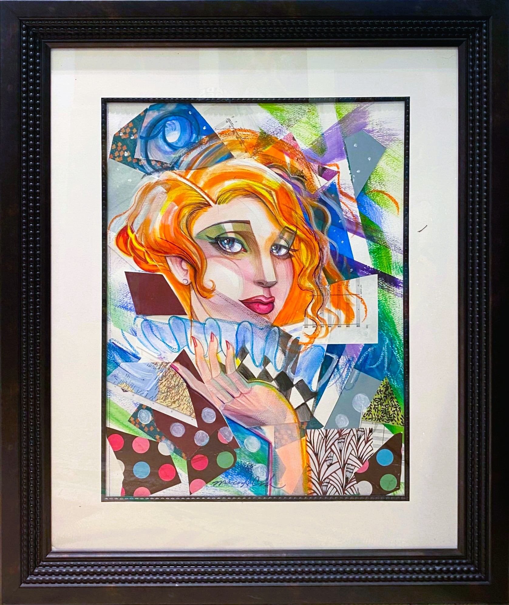 My synthetic cubist paintings are like a stream of consciousness, which starts with a collage of randomly placed pieces and textures. The universe is broken down into colors and shapes via the rationale that it is comprised of circles and right angles; I paint while remaining consciously aware of color blocking and shapes. This collage style of synthetic cubism challenges and strengthens my sense of aesthetics. The cubist paintings depict the mundane in a colorful, vibrant, and transparent way, by expressing movement in the mundane objects as frenetic textural juxtaposition of shape, pattern, and color. I have developed an interconnection of self and the environment that space and time are interdependent and intermingled.
