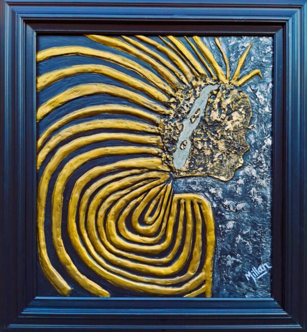 A Colombian American Leyhbert Millan Sharp is a self-taught visual artist. He was the winning artist for Fiesta Flambeau in 2018, which historically marked The Alamo city’s Tricentennial anniversary and has won other art competitions in Texas. Millan breathes life into his works at night, and finds that the evening invigorates the perfect mood for creating dynamic visual masterpieces with a variety of elements, color and techniques. He holds two degrees, in Industrial Relations and in Film/Television Production. He has worked as a technical director and video reporter for different conventions and political events around the world. He is currently a Warrant Officer 1st Class for the Texas State Guard.