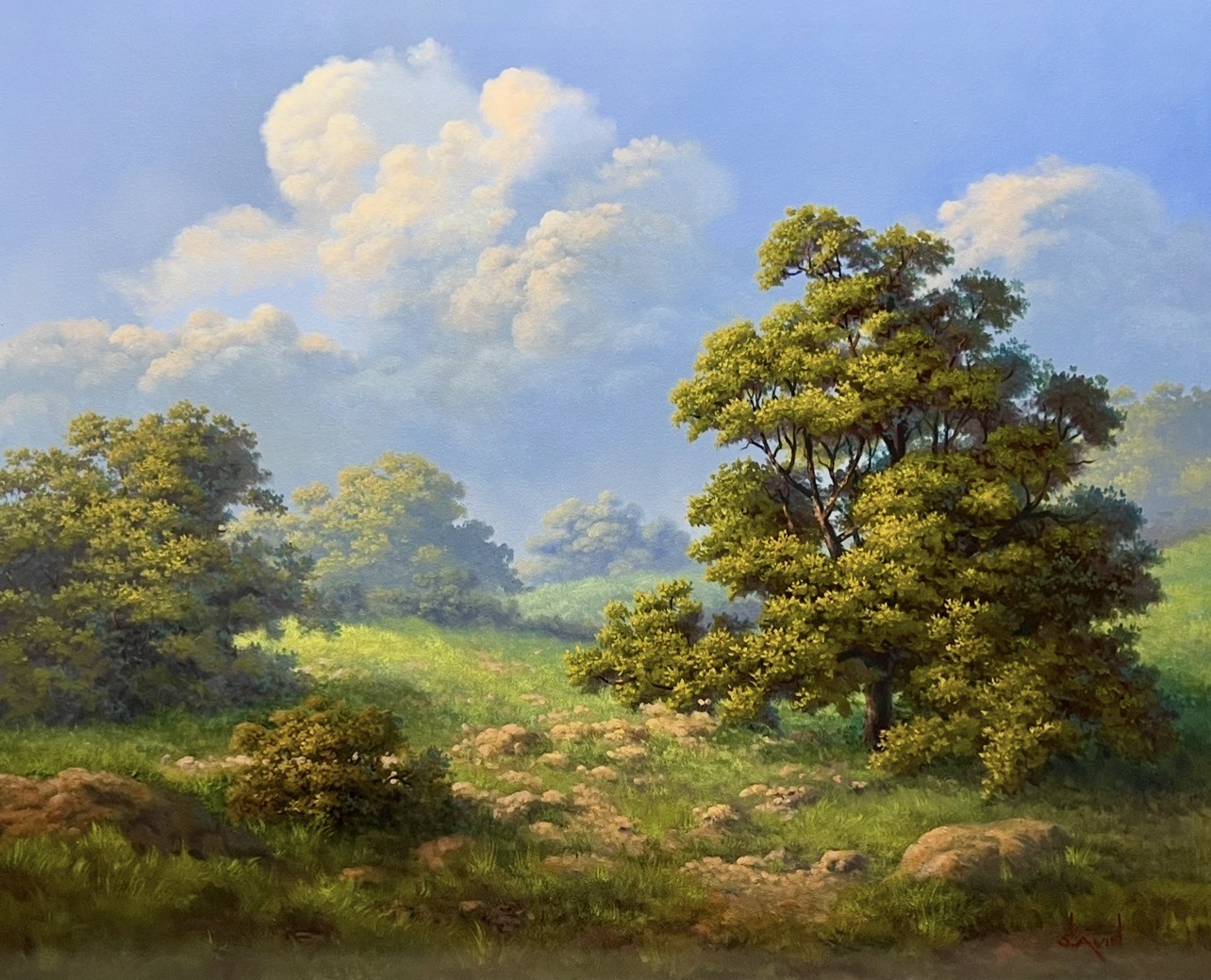 I am a Texas artist from San Antonio. I graduated from Clark High School and went to Texas A&M University where I earned a BS in landscape architecture. I am a predominantly self-taught painter, working primarily in oils. My intent is to communicate emotions, feelings, and wonderments to the people who view my paintings. Design, composition, texture, color and mostly light help convey things. Most of my paintings are pulled from my imagination and I’d like to make them look real. Painting to me is like magic, mystifying and fun and it’s wonderful when my work connects with people. Nature moves me; trees, skies, clouds, colors but especially the light! The light is what inspires me.