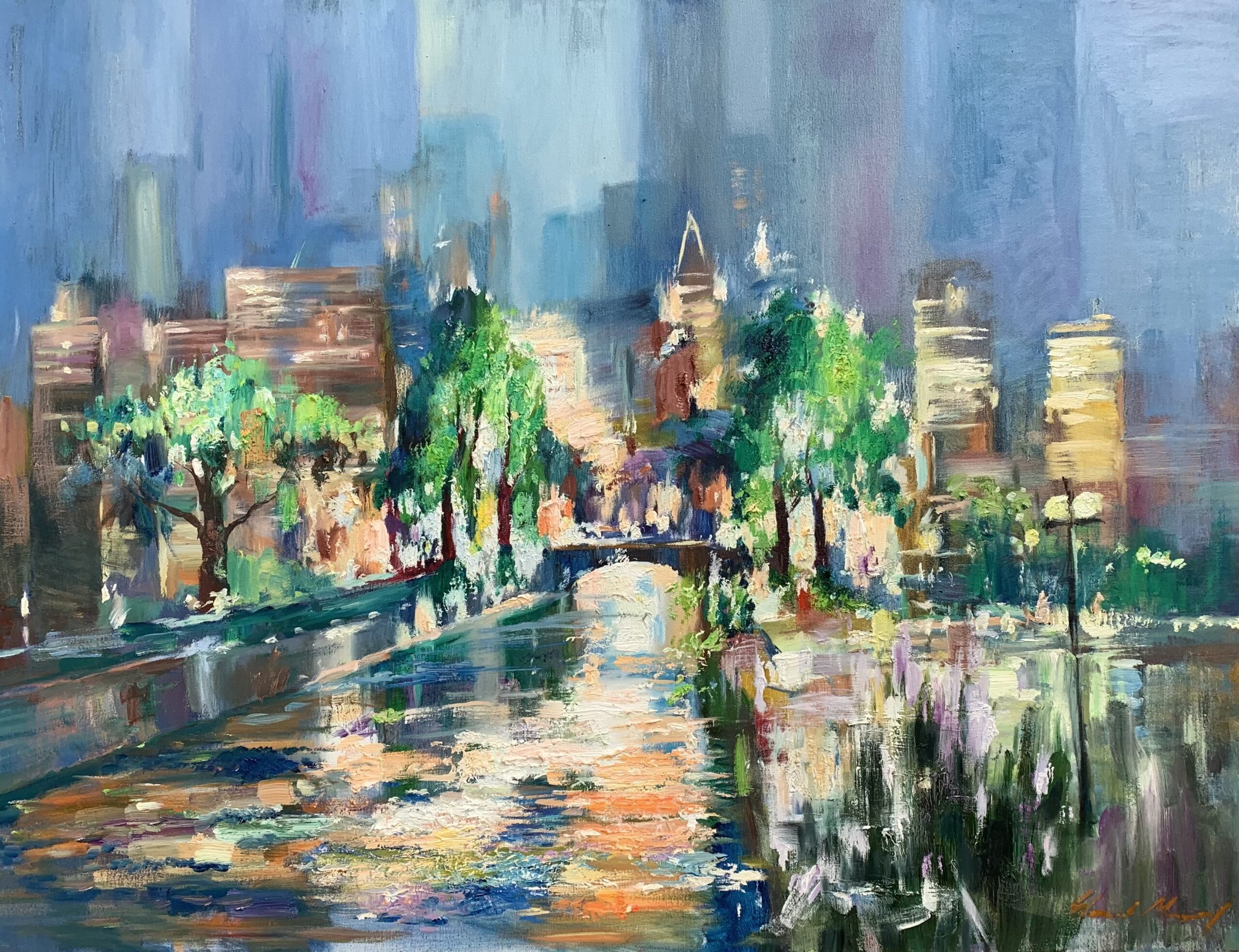 Night City Lights – Yevhenii Mosieiev – 30″ x 40″ – Oil on Canvas