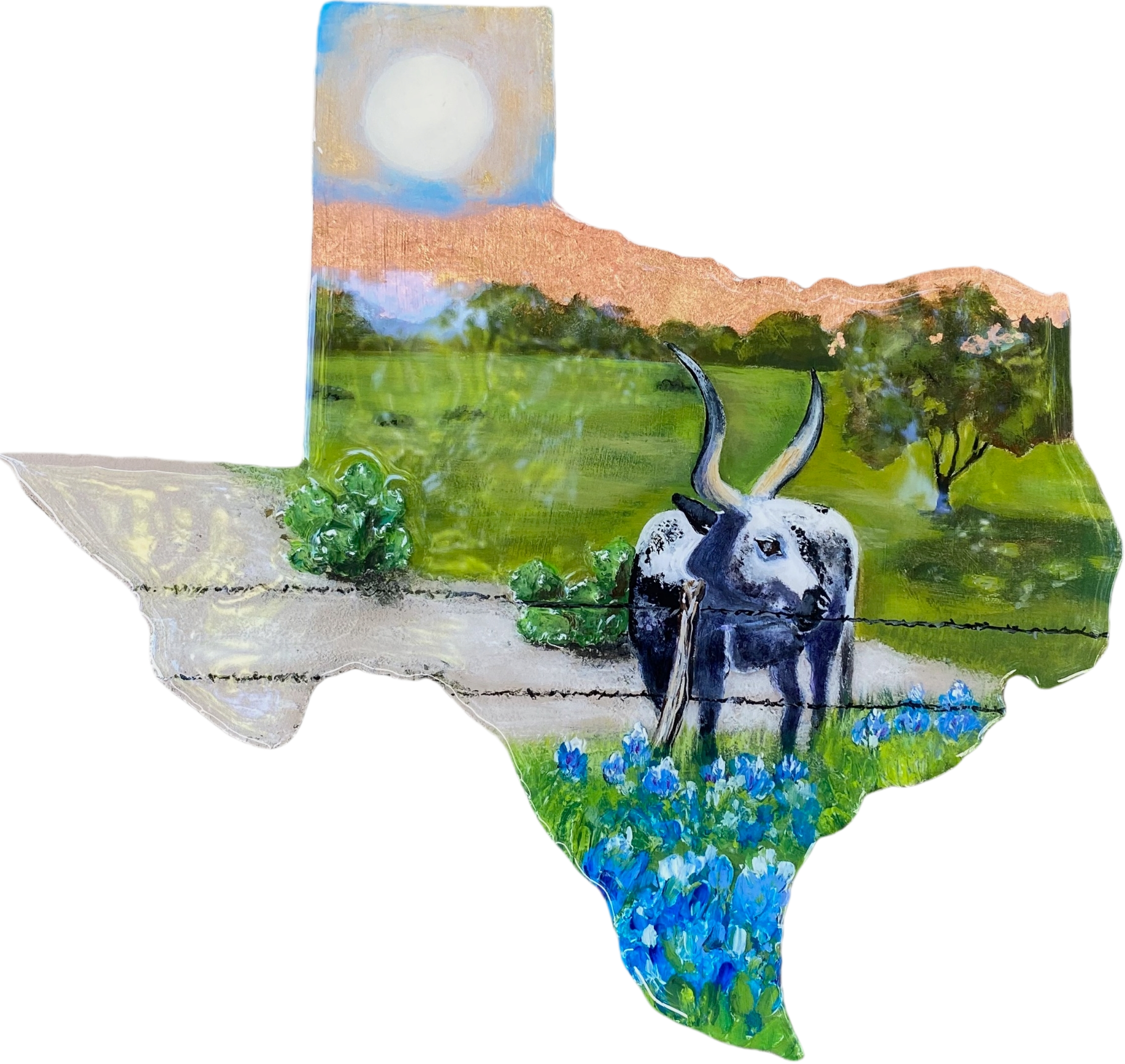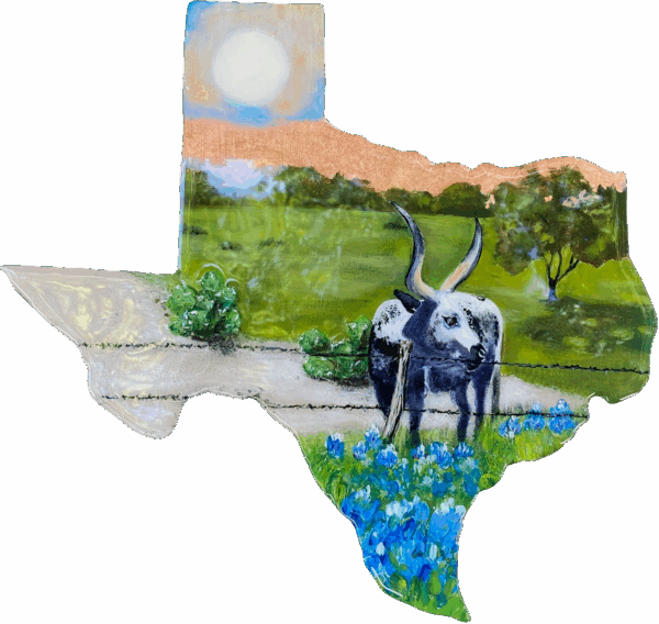 Texas Longhorn – Melissa A. Torres – 12″ x 12″ – Mixed Media on Wood